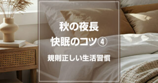 2025年10月15日 規則正しい生活で、秋の夜長をもっと快適に 秋の夜長は眠りのリズムを整える好機。規則正しい生活習慣を守ると、眠りの質がぐんと安定します。 毎日、同じ時間に起きて、同じ時間に寝ることを心 […]