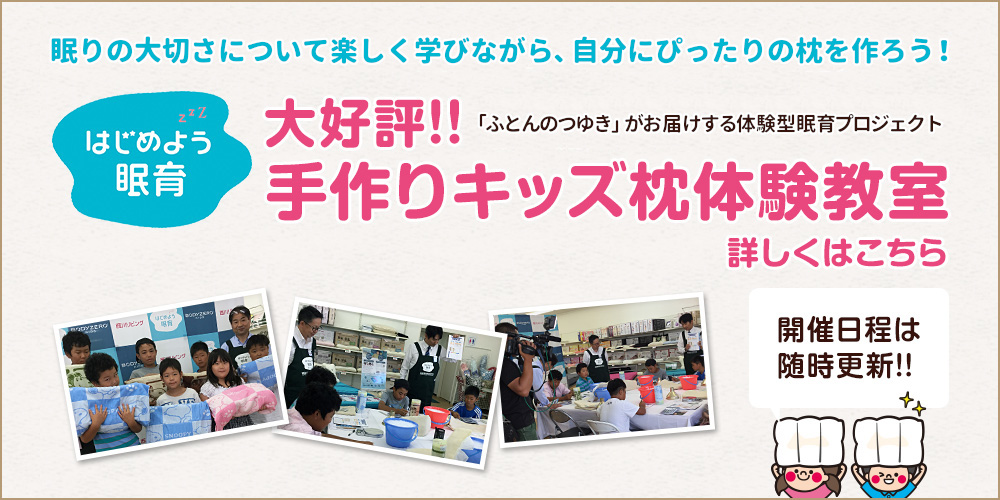 2026年2月5日 ただいま「手作りキッズ枕体験教室」のご予約好評受付中です! 手作りキッズ枕体験教室では 眠りの大切さを楽しく学びながら自分にぴったりの枕を作っていきます。 お子様が自分の眠りを大切に思い、進んで寝る準 […]