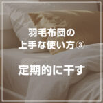 2025年11月21日 【プロが教える快適睡眠のコツ】羽毛布団は「カバー」で変わる! 羽毛布団をお使いの皆さん、カバーは必ずかけていますか? カバーなしで使っている方は「ちょっと待って!!!」 羽毛布団は、 […]