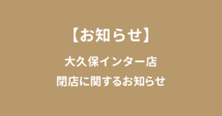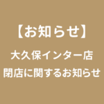 2025年10月9日 いつもご愛顧いただき誠にありがとうございます。 このたび大久保インター店は、店舗移転のため2025年11月30日(日)をもちまして完全閉店することとなりました。 これまでのご愛顧に感謝の気持ちを込め […]