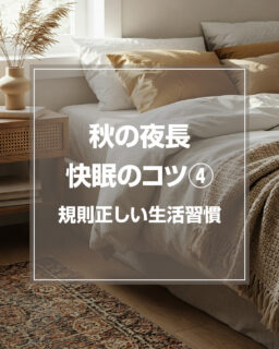 毎日の習慣をきちんと守ることで、質の良い睡眠を手に入れることができます。秋の夜長にしっかり休むために、今日から規則正しい生活を心がけてみてくださいね (*^▽^*)/