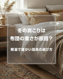 実はその原因、寒さ対策で重ねた布団や厚着の「重さ」かもしれません。重い寝具は体に圧力をかけ、寝返りを妨げて血行不良を引き起こします。これが冬のしつこい肩こりの正体です。
